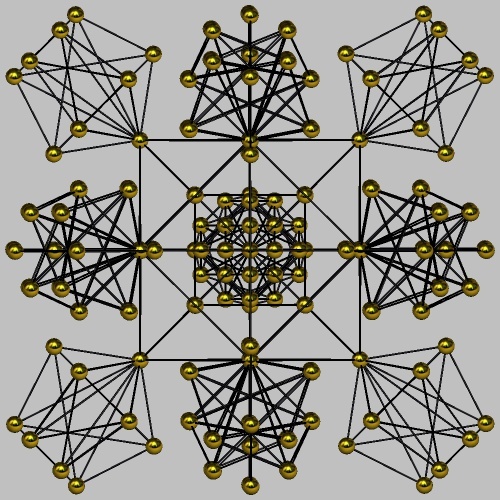 Surrounding that Complex, we have a Generating capsule formed by the 31 Emotional/Suggestive Rings or planes of an Icosidodecahedron of Intuition. An Emotional plane dissects a sphere in half. It is centre-dissecting, similar to an Equator. There are 6 Decagon rings of Belief or Choice, 10 Hexagon rings of Awareness, and 15 Square rings of Intellect. The junctions of those rings, where they interconnect on the surface of a sphere, form 242 points or vertices. They consist of the 72 vertices of the multiple 6 Icosahedrons of Will that forms the symbolic structure of Faith, which is Trust-based Will, the 80 vertices of 6 Dodecahedrons of Instinct, which symbolises Instinctual Respect (Respect is Awareness-based Feeling and a Dodecahedron of Instinct is a multiple of 5 Cubes of Common Logic) and the 30 vertices of the multiple 5 Octahedrons of Nature that form an Icosidodecahedron of Intuition. Last, but not least, we have the 60 vertices of the multiple 5 Cuboctahedrons of Self-awareness, which forms Compassion.